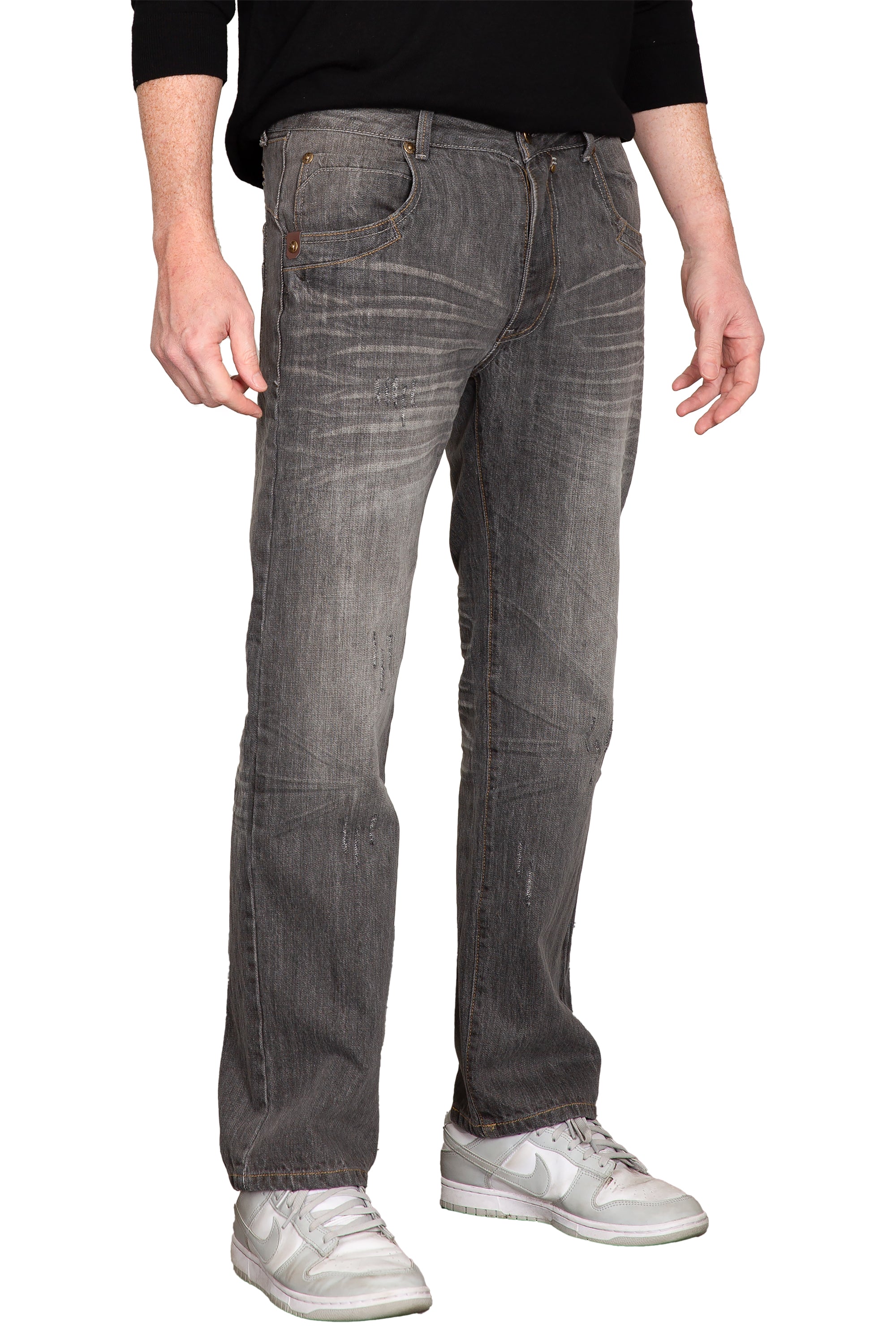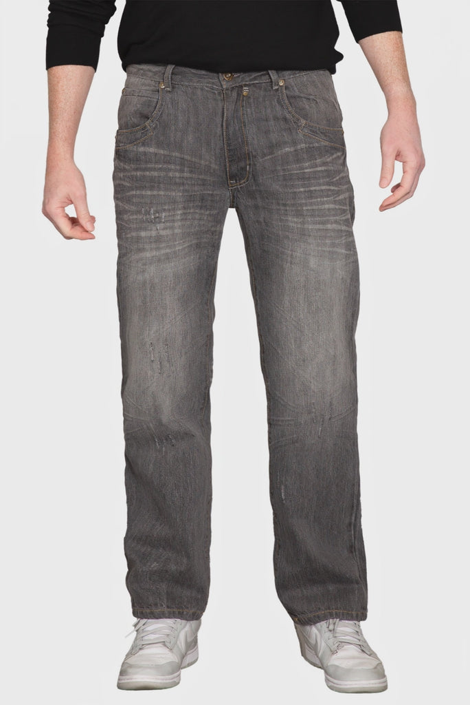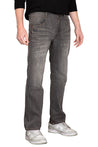 Men's Relaxed Bootcut Denim Distressed Jeans with Zipper Pocket